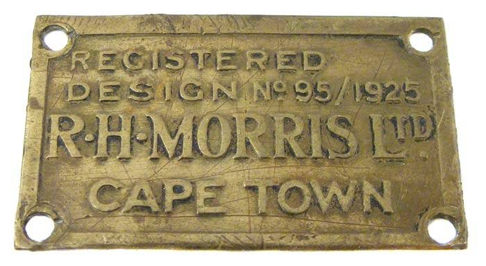 1925 RH MORRIS REGISTERED DESIGN CAPE TOWN BADGE