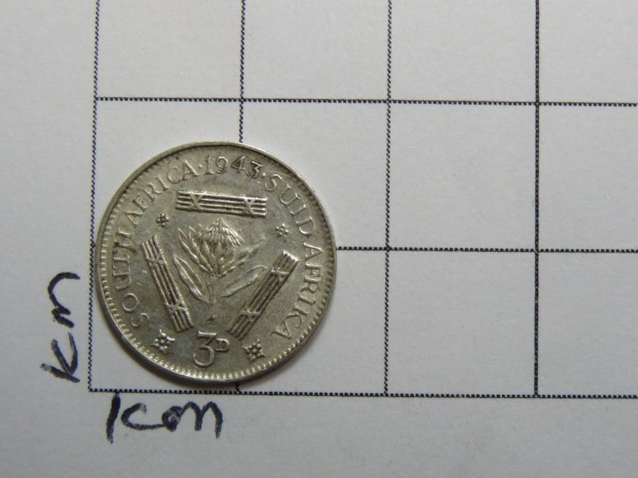 1943 tickey VF+ - Totally misaligned 43 - Some petals on right of protea missing