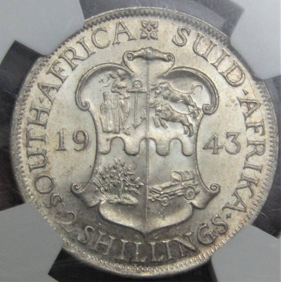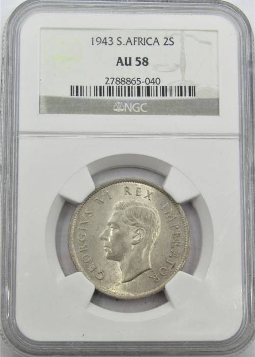 1943 Union of South Africa 2 Shillings NGC Graded AU58