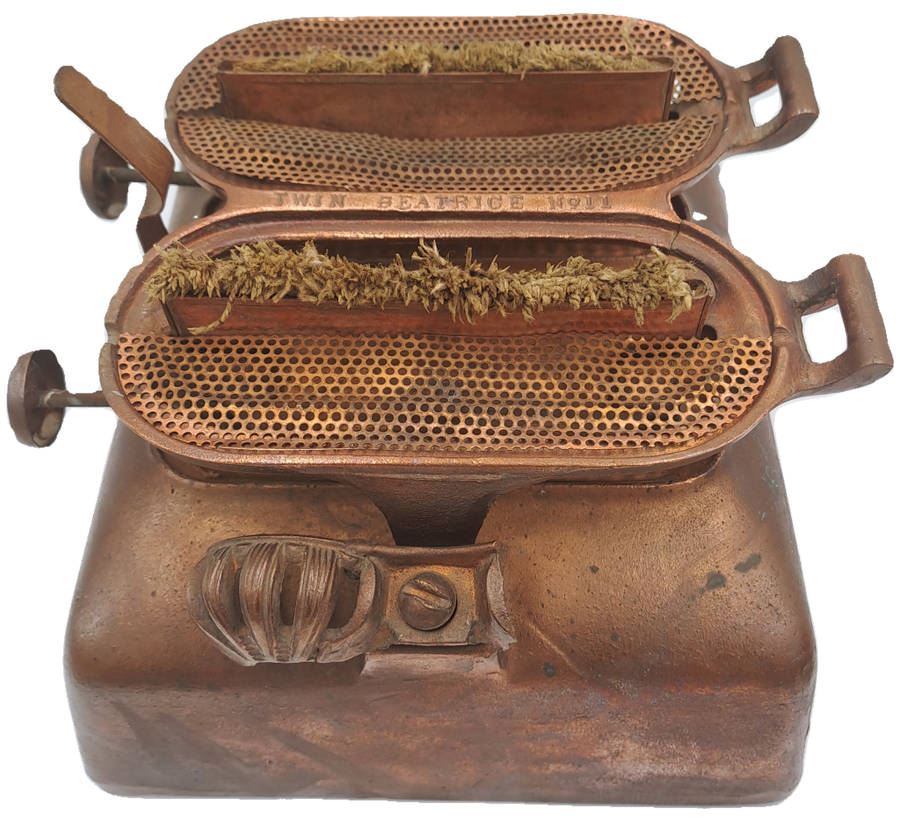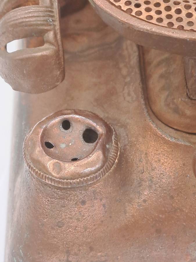 POSTAGE WILL BE COMBINED:Collection in Mondeor Johannesburg:Tip: To save on shipping -Buy more than one of My 1900+ ItemsEarly 1900's Antique Cast Iron Twin Beatrice No 11 Kerosene stove -Copper plated, 27cm (Tall)X 19cm x 19cmPlease Note small piece broken of the handle.The Cap is bended will need some restoration.Also referred to as a boiling stove, the Beatrice Twin Kerosene Stove first arrived on the scene in the early 1900s. Using a flat wick, it provided the necessary heat for cooking. According to Miles Stairs' Wick Shop, an early Beatrice stove made in the Beatrice Foundry in 1901 had an enamelled cast iron base.-Please see ALL IMAGES - Multiple Images Uploaded - The pictures of the items form part of the descriptionDue to the age of many of our Items there might be some Flaws and Imperfections.Colours depicted in the photos of items may differ from the actual colour of the items due to many factors including the light and the time of day that the photos are taken.I always try to get the description 100% correct with some research but can get it wrong sometimes ..i am not an expert. |