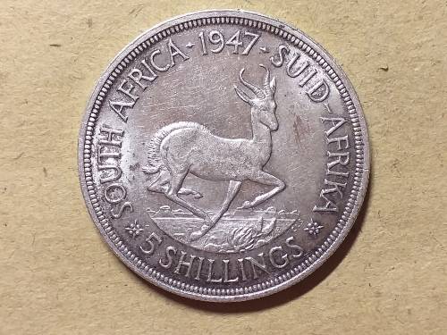 1947 SA UNION SILVER 5 SHILLINGS 1947 SA UNION SILVER 5 SHILLINGS