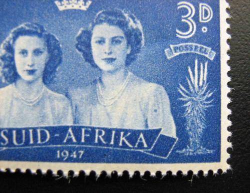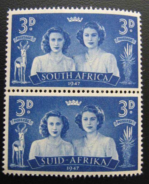 1947 Union of South Africa 3d pair with "stain on blouse" flaw.