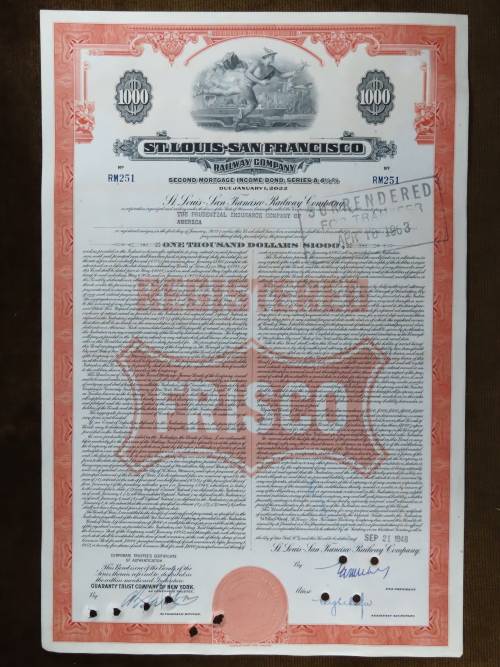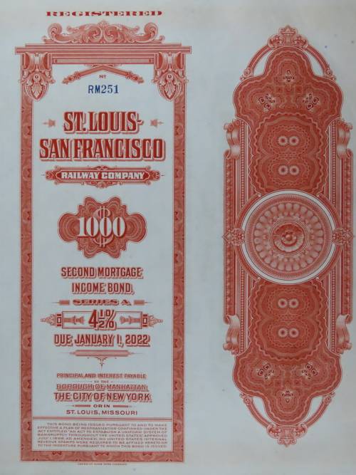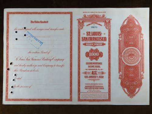 1948 St Louis San Francisco Railway Company, $1000 Bond Certificate RM251 1948 St Louis San Francisco Railway Company, $1000 Bond Certificate RM251 1948 St Louis San Francisco Railway Company, $1000 Bond Certificate RM251 1948 St Louis San Francisco Railway Company, $1000 Bond Certificate RM251 1948 St Louis San Francisco Railway Company, $1000 Bond Certificate RM251 1948 St Louis San Francisco Railway Company, $1000 Bond Certificate RM251 1948 St Louis San Francisco Railway Company, $1000 Bond Certificate RM251 1948 St Louis San Francisco Railway Company, $1000 Bond Certificate RM251 1948 St Louis San Francisco Railway Company, $1000 Bond Certificate RM251 1948 St Louis San Francisco Railway Company, $1000 Bond Certificate RM251 1948 St Louis San Francisco Railway Company, $1000 Bond Certificate RM251 1948 St Louis San Francisco Railway Company, $1000 Bond Certificate RM251
