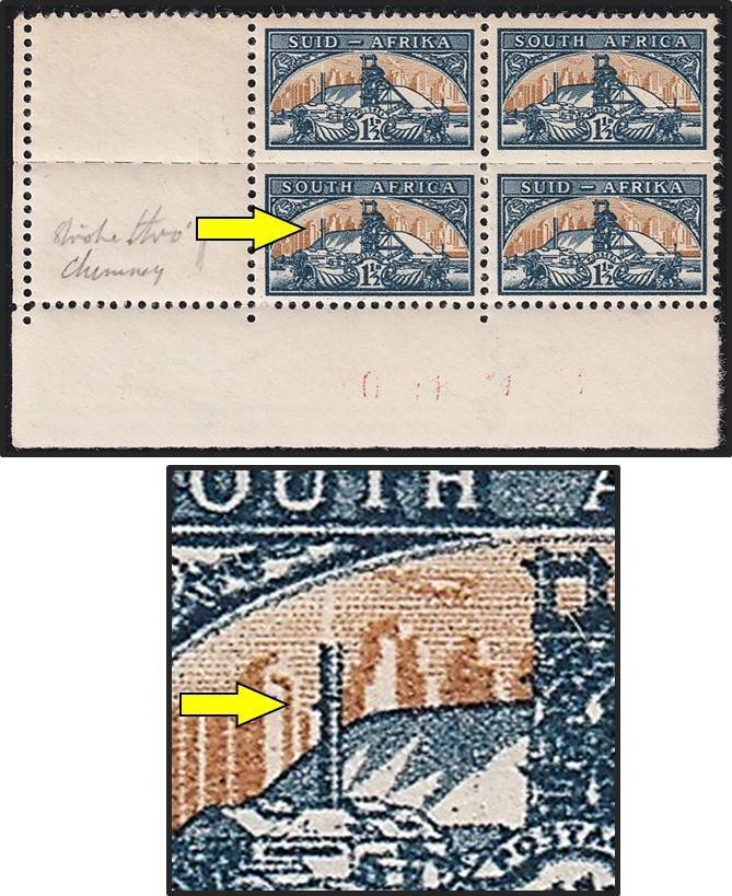 1948 Union 1½d UMM(**) Variety - Stroke through Large Chimney