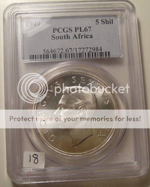 1949 Crown (5-Shilling) : Union of South Africa : PCGS graded PROOF-LIKE (PL67)