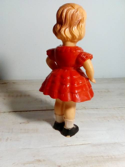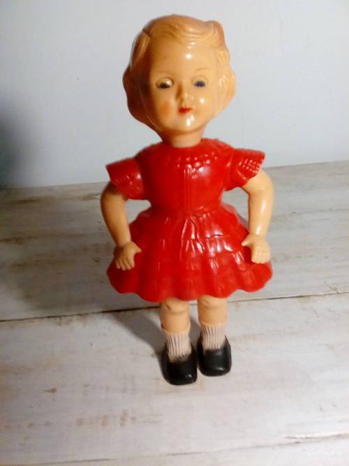 The wired mechanism of this doll allows the head to turn from side to side when the legs are moved.