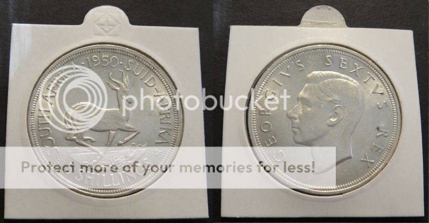 This is the scarcest of the George VI crowns (silver 5-shilling pieces) of the Union of South Africa.