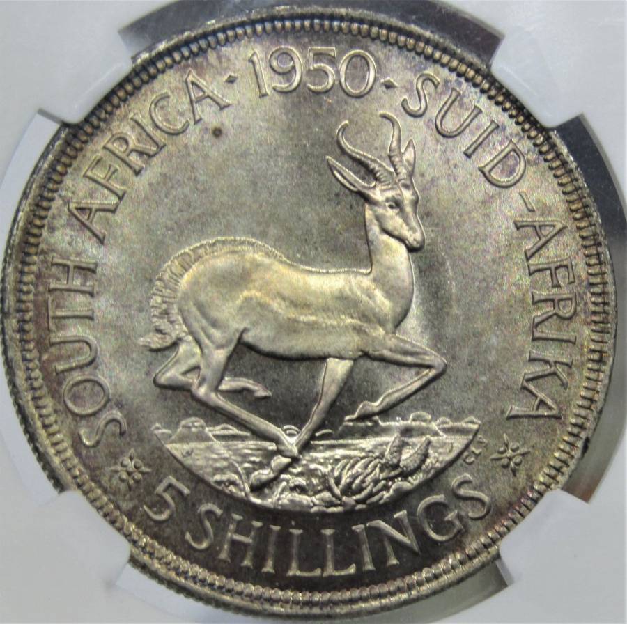 Key date and much sought after 1950 5 Shillings in an NGC graded PF66 designation.