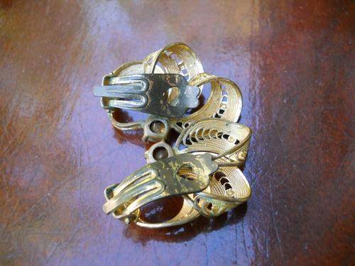 1950 Vintage Glamorous Filigree Metal Flower Costume Jewelry Clip Earrings