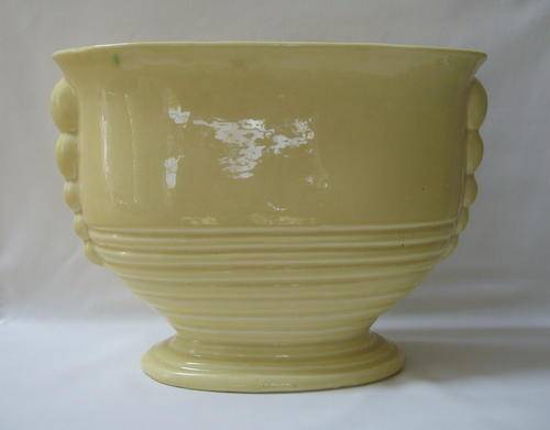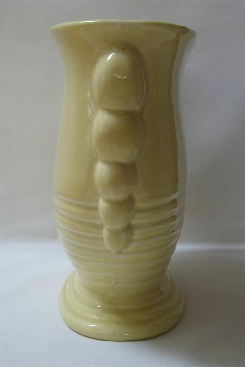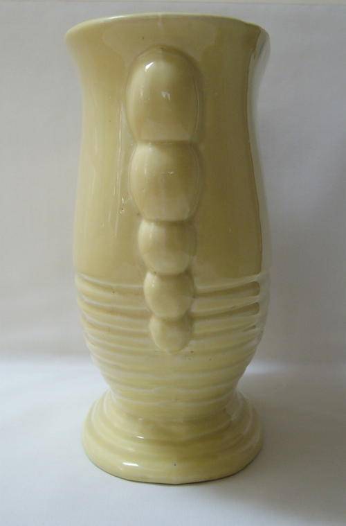 An impressive Retro 1950's Art Deco-esque yellow glazed footed, ribbed vase.