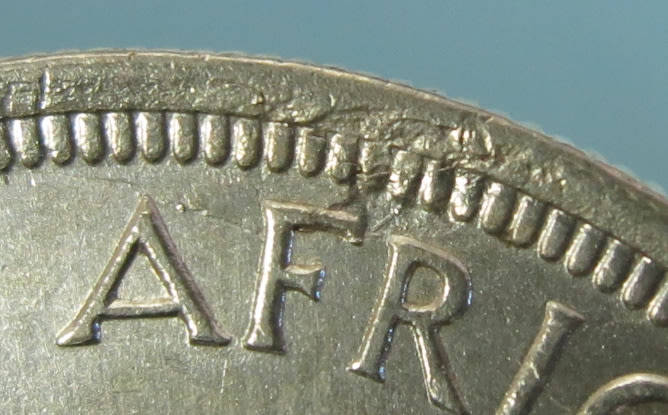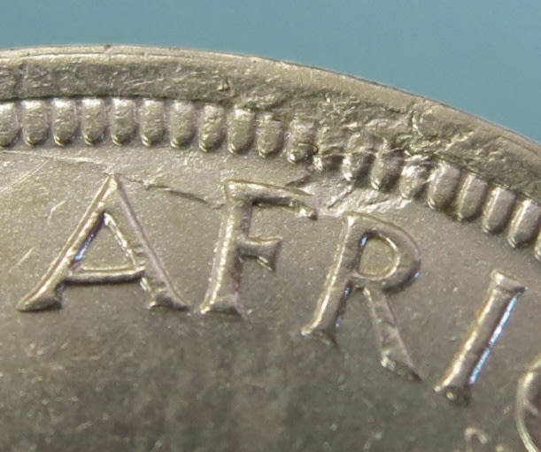 Die crack on right by the "FR" in "SOUTH AFRICA"
