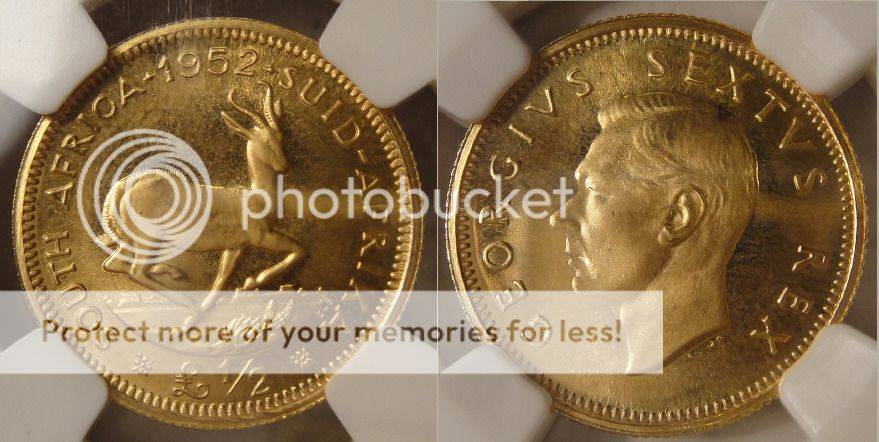 1952 GOLD Half-Pound of the Union of SA : NGC graded PF66