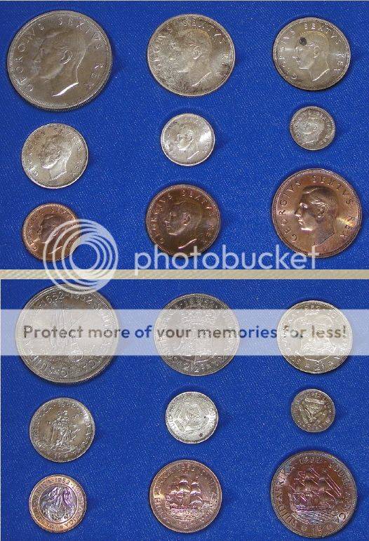 The 2/- show a spot or two dark toning, but I believe that all the coins will grade.