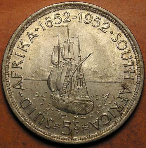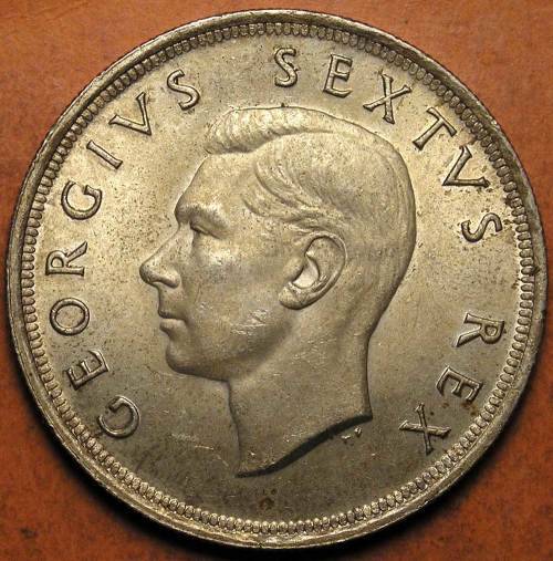 An SA Union Silver (50%) 5 Shillings (Crown) of King George V dated 1952. Circulated condition.
