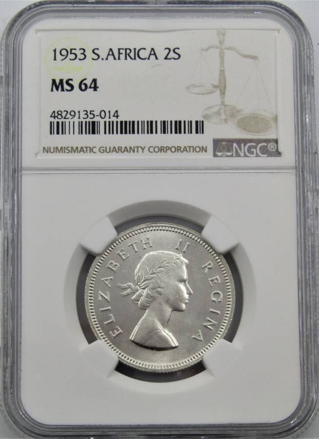 1953 Elizabeth II 2 Shillings NGC Graded MS64