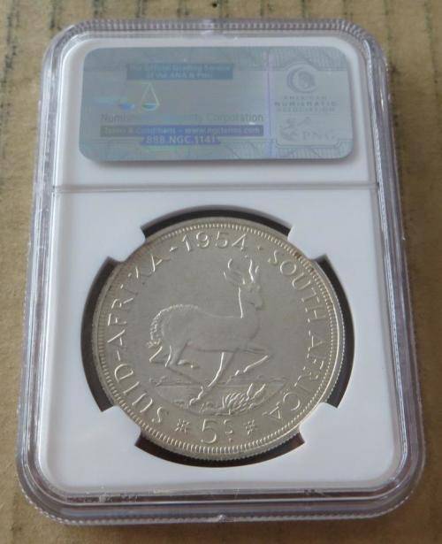 1954 South Africa 5 Shilling Crown PL66 NGC Graded