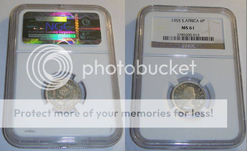 1955 Sixpence (6d): Union of South Africa: NGC graded MS61
