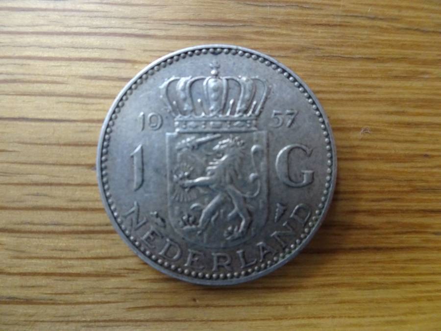 1957 Juliana Dutch Silver One Gulden (1G) - In Good Condition 1957 Juliana Dutch Silver One Gulden (1G) - In Good Condition