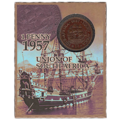 1957 Union Of South Africa - 1 Penny - 1D - In 2 x 2 Coin Flip