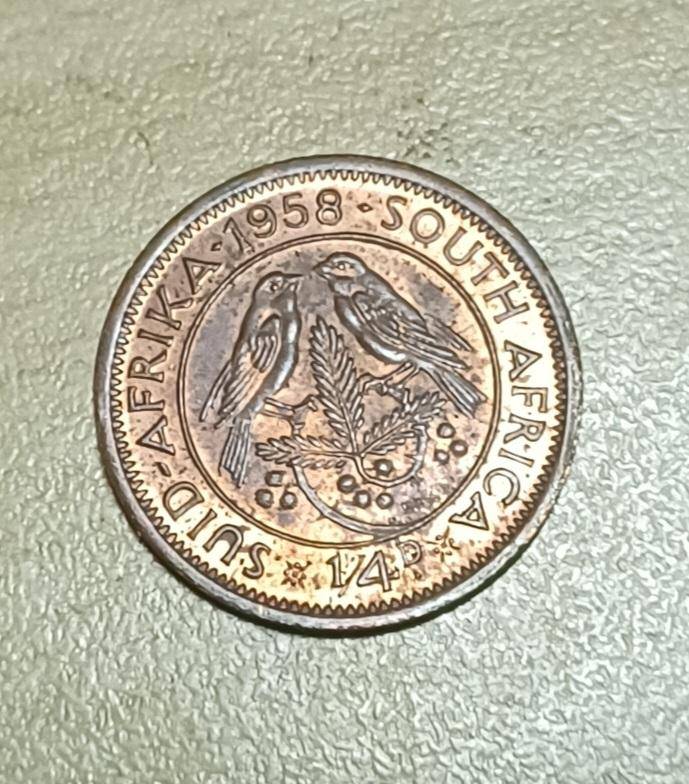 1958 ~ 1/4D ~ 1/4 Penny ~ Farthing ~ South Africa 1958 ~ 1/4D ~ 1/4 Penny ~ Farthing ~ South Africa