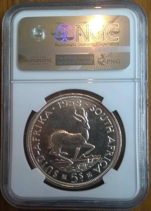 1958 SA 5 SHILLINGS NGC GRADED PROOF 64