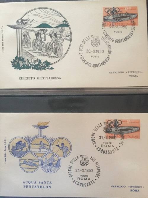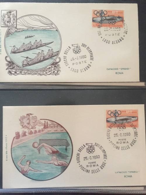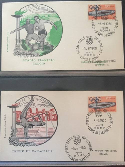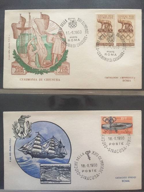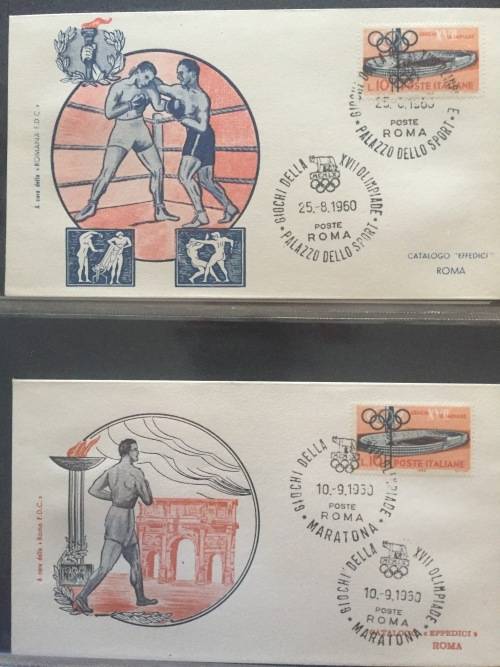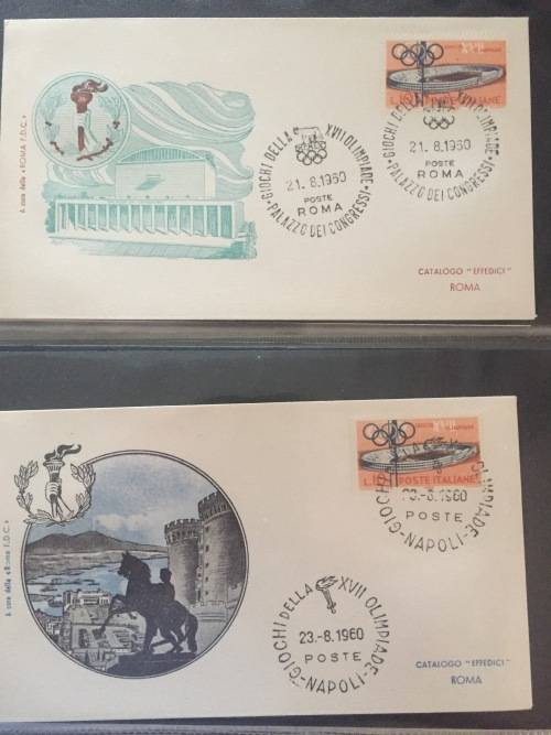 ALBUM FULL OF 1960 ROME OLYMPIC GAMES COVERS - A DIFFICULT LOT TO ACCUMULATE . NO DUPLICATES , VIEW SCANS BELOW. COVERS ARE NUMBERED. FINE SUPERB ITEMS HERE. POSTAGE WILL BE R60 .