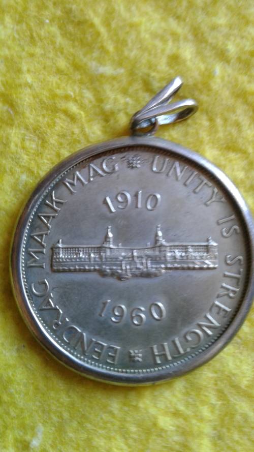 1960 SILVER 5 SHILLING (UNION OF SOUTH AFRICA 1910-1960 IN LOCKET FITTING