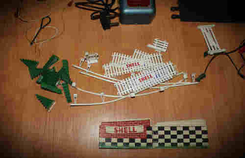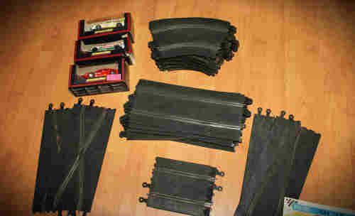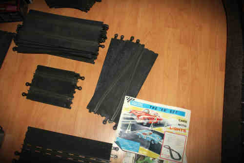 -1960's Scalextrix set with 30x 156mm wide tracks,3 cars,transformer,4 controllers DONT HAVE ORIGANAL BOX consist off: 30 x 165mm wide 2 lane tracks 9 straight {348x165mm), 14 bends 1 narrow,2 cross over 2 other 4 hand controllers(2 extra) bridge stands and rails Manuel and maintenance manual CONDITION: All Items SOLD as FOUND - -Please see ALL IMAGES below |