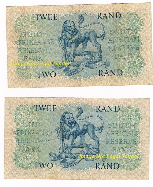 1961 Afrikaans/English Pair Twee Rand/ Two Rand banknotes MH de Kock set #*$ Weekend Special$*#