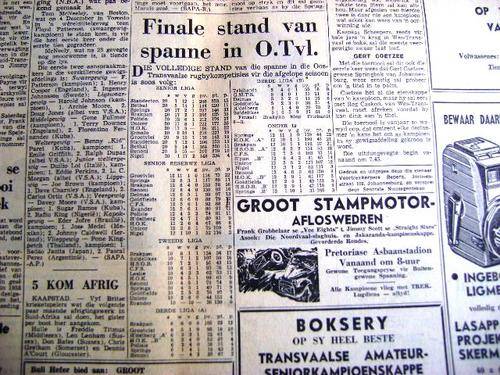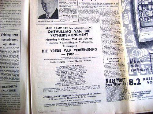 1961 DIE TRANSVALER NEWSPAPER, DIE VREDE VAN VEREENIGING, VERWOERD, E TVL RUGBY