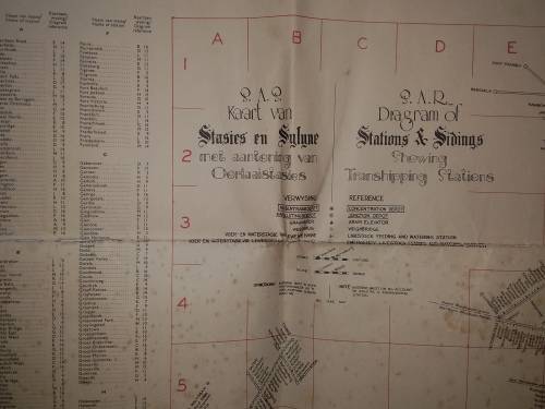 1962 S.A.R Diagram Of Stations and Sidings-Showing Transhipping Stations