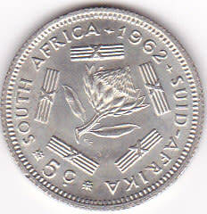 1962 SOUTH AFRICA FIVE CENTS SILVER