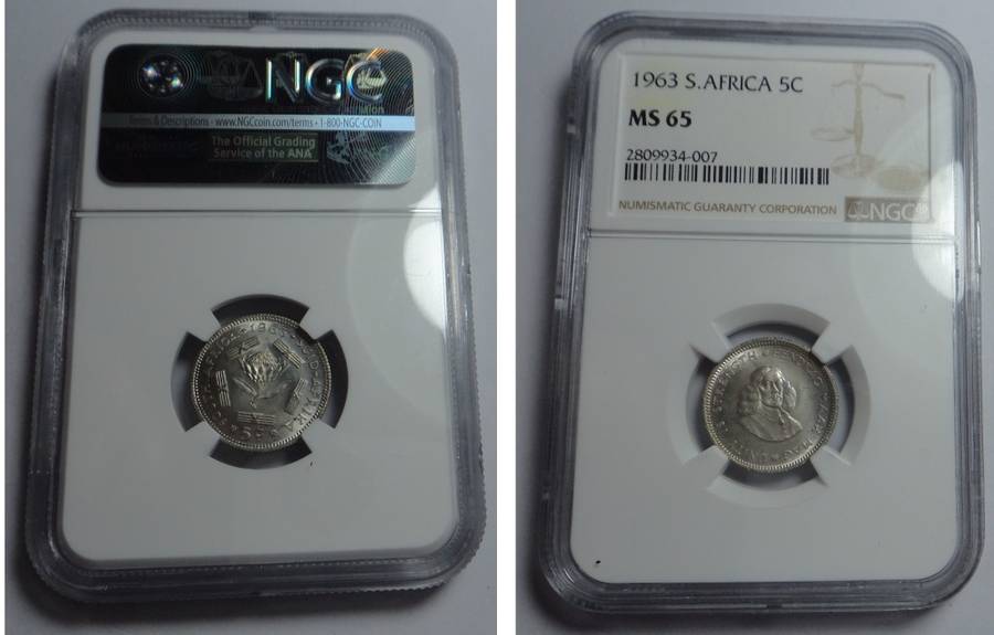1963 Silver 5c, Republic of SA: NGC MS 65
