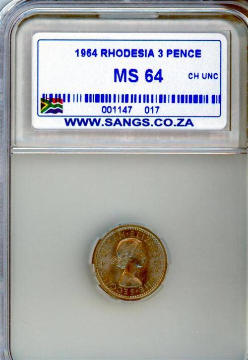 1964 Rhodesia & Nyasaland 3 Pence MS64