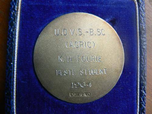 1964 University of Free State silver gilt medal for best B.Sc Agric student, in original SAM box