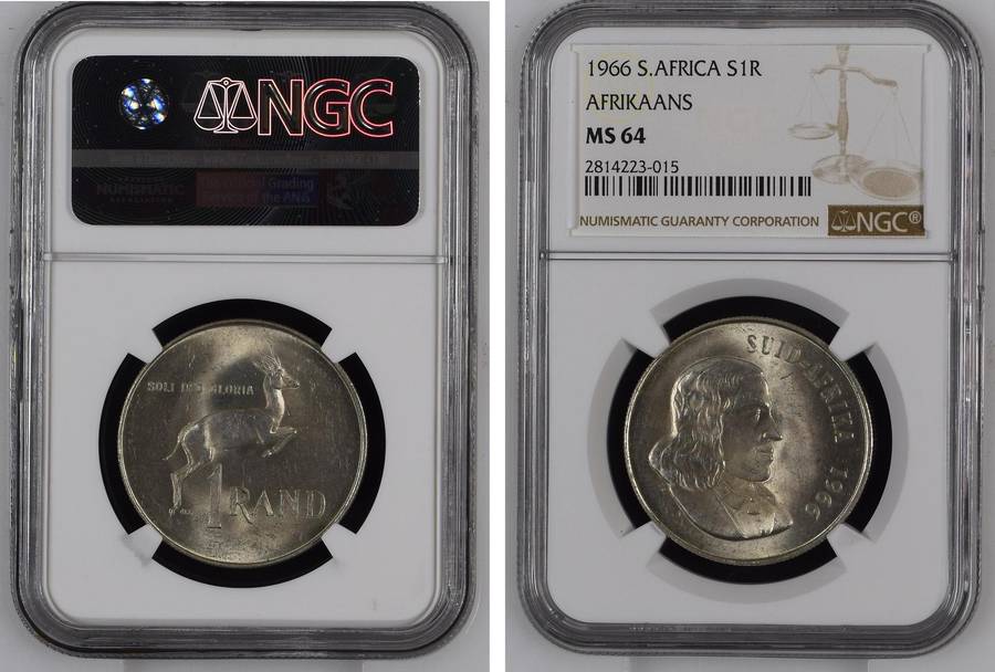 1966 (Afrikaans) Silver R1: NGC MS 64