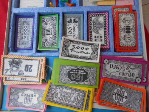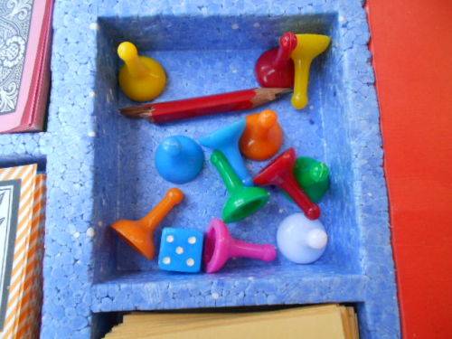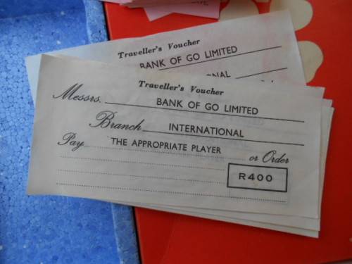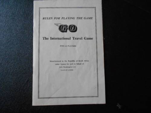 1966 board game: GO. Waddinton's. Condition: Box cover is worn, contents inside are very good. All the parts appear to be present. Only deviation is that 6 pairs of identically coloured token are required and 5 off are present and the 6th pair is coloured one pink and one white - see photo's.