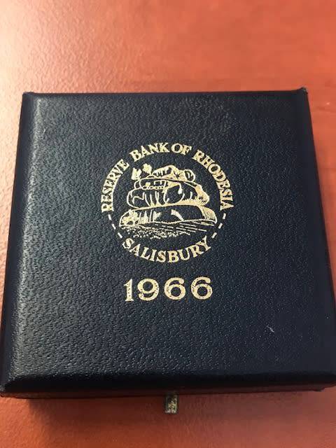 Only 5000 coins minted bearing the LION and TUSK armorial crest of Rhodesia on the reverse.