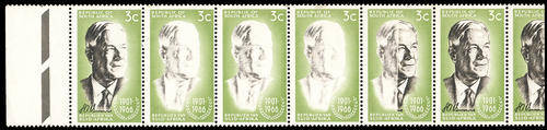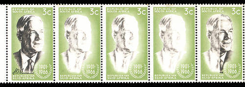 1966 Verwoerd 3c, Strip of 20 from row 4.