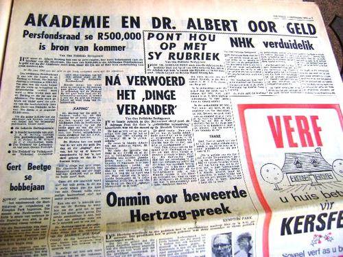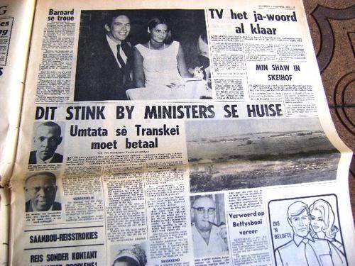 1969 BEELD NEWSPAPER, RUGBY TOUR,CHRIS BARNARD, SA TV, MANDELA, DIE AFRIKANER, BRIGITTE BARDOT