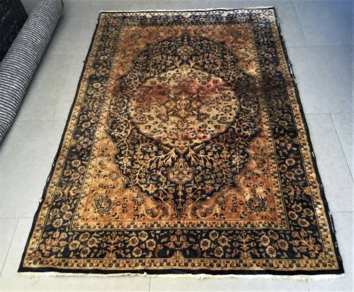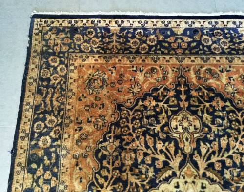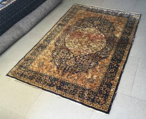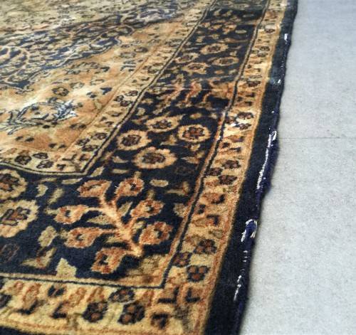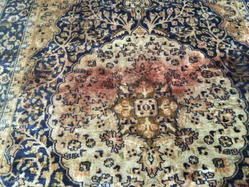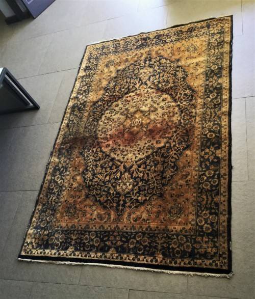 Hi there, I have this great genuine hand-knotted tight weave Persian carpet. The carpet is worn, with a few loose strands around the edge and some marking in the centre. I am not sure if it will come off. The carpet has beautiful colours and measures 1970mm by 1300mm.
