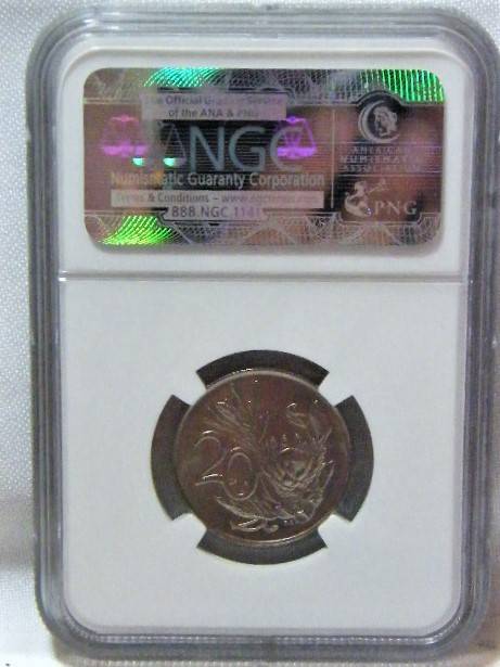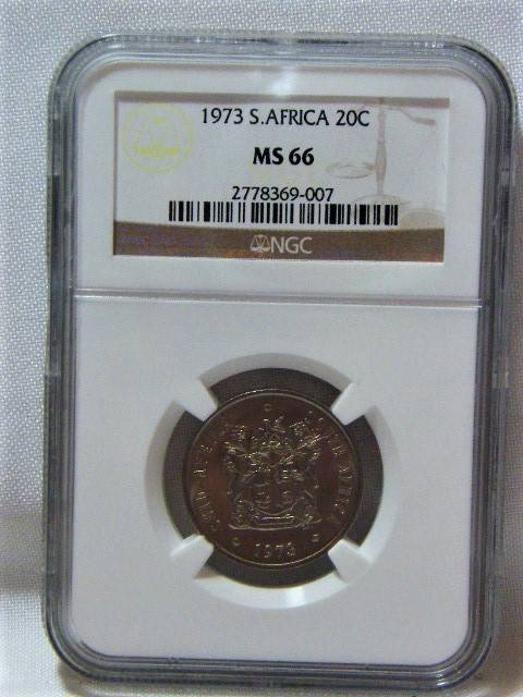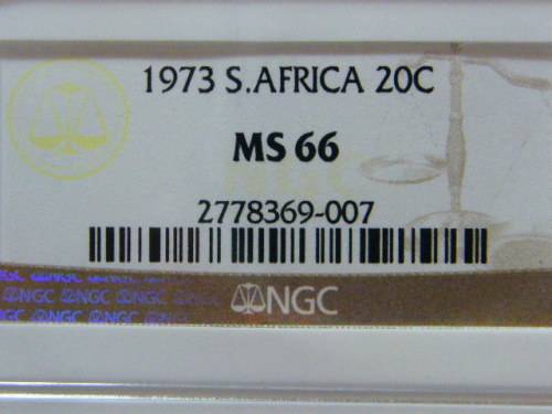 1973 RSA 20 cent graded MS66 by NGC - only 20 000 minted
