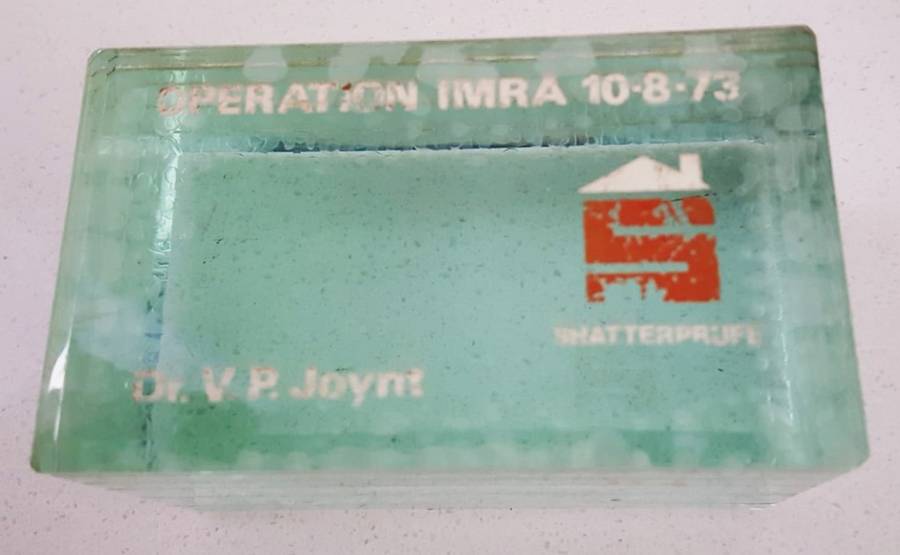 1973 SADF Operation Imra Bullet Proof Glass Memento.