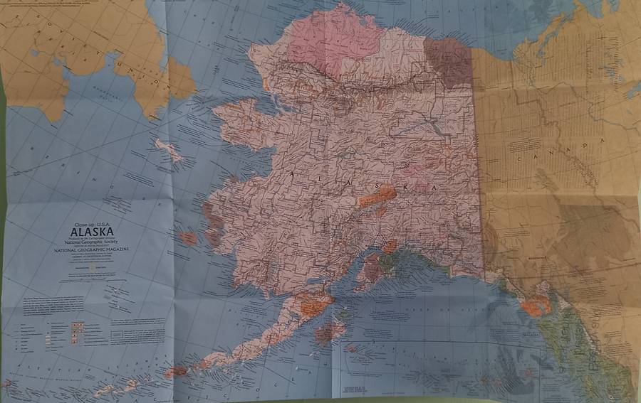 1975 Folded Map of ALASKA Published By National Geographic 89cmx70cm