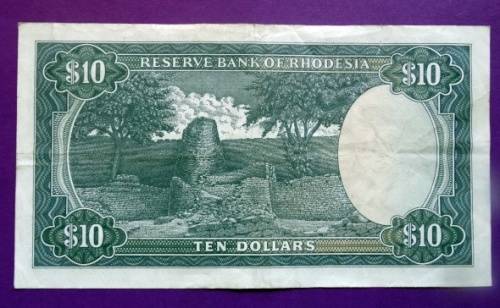 1975 Rhodesia $10 Banknote. Rhodes Watermark