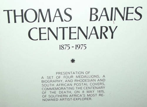 1975 Rhodesia Thomas Baines Centenary Medallions, Biography and Postal Covers Presentation Set.