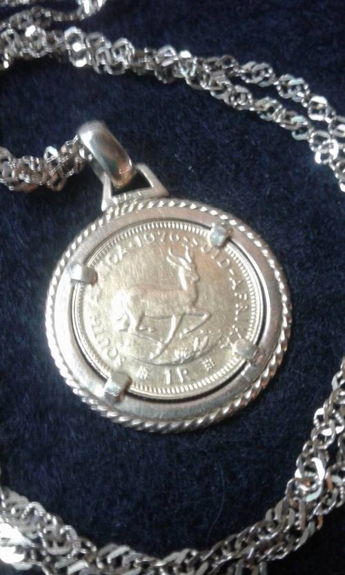 1976 GOLD 22 CT GOLD COIN SET IN PENDANT 9 CT AND 9 CT GOLD CHAIN LIKE NEW