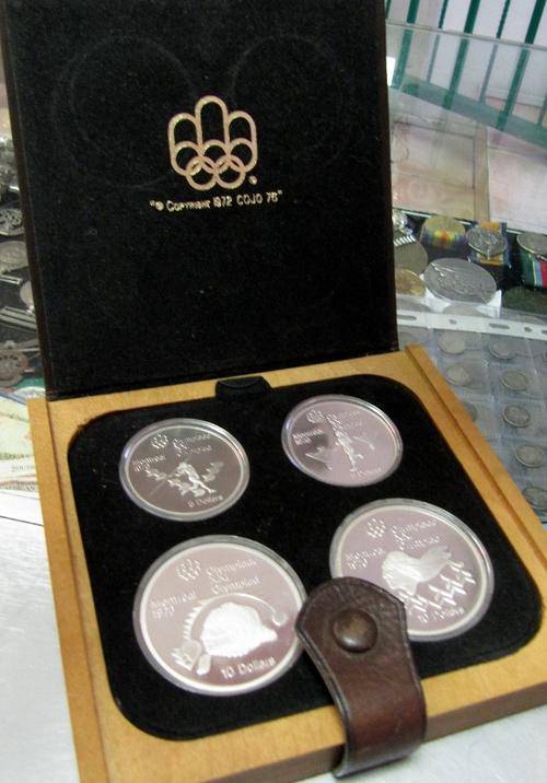 Issued from 1973 to 1976, these $5 and $10 sterling silver coins were grouped into seven sets of four coins each. These premium proof coins are of top quality and are packaged in original Canadian birch and leather boxes.