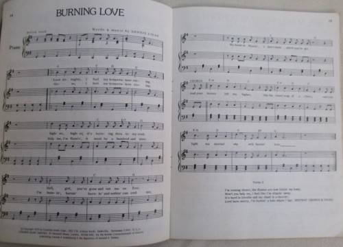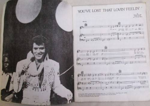 PUBLISHED IN 1977 BY EMI MUSIC PUBLISHING LTD A BOOK WITH THE MUSIC AND WORDS OF TEN ELVIS SONGS AS WELL AS FULL PAGE IMAGES OF ELVIS. APART FROM A RATHER ELABORATE SIGNATURE ON THE CONTENTS PAGE THE BOOK IS IN GOOD, CLEAN CONDITION - 27.5CM X 21CM WITH 32 PAGES. REFER IMAGES