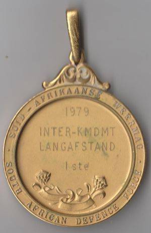 Condition As Per Scans.1979 SADF INTER KMDMT LANGAFSTAND GOLD SPORTS MEDAL FOR SHOOTING